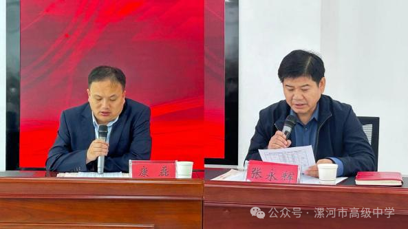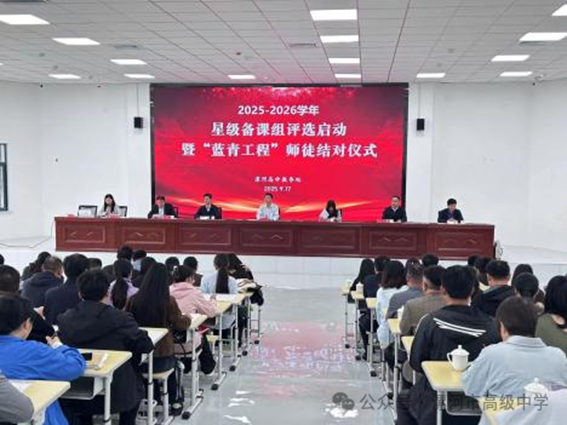 为进一步加强学校师资队伍建设,发挥优秀骨干教师的示范引领作用,切实提升青年教师的教育教学水平,2025年9月17日上午,漯河市高级中学2025-2026学年上学期高一年级星级备课组评选活动暨“蓝青工程”师徒结对仪式隆重举行。漯河高中党委书记赵耀堂,党委副书记、校长郭爱红,党委委员、副校长柳荣军,党委委员、副校长丁爱军,教务一处主任、高一一部年级主任康磊,总务处副主任、高一二部年级主任张永辉出席会议,会议由教务一处副主任姚冬青主持。