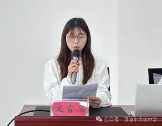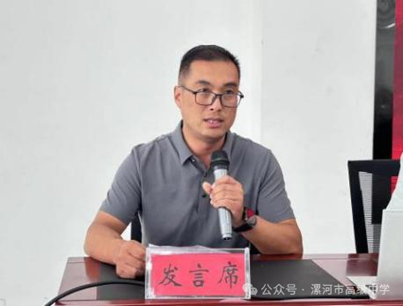 师徒代表发言。新教师代表许阿润表达了对导师们耐心细致指导的感谢。导师代表吴晓勇肯定了新教师在教学工作中的投入与付出,鼓励新教师珍惜学校提供的宝贵机会,为漯河高中教育教学工作的高质量发展贡献力量。