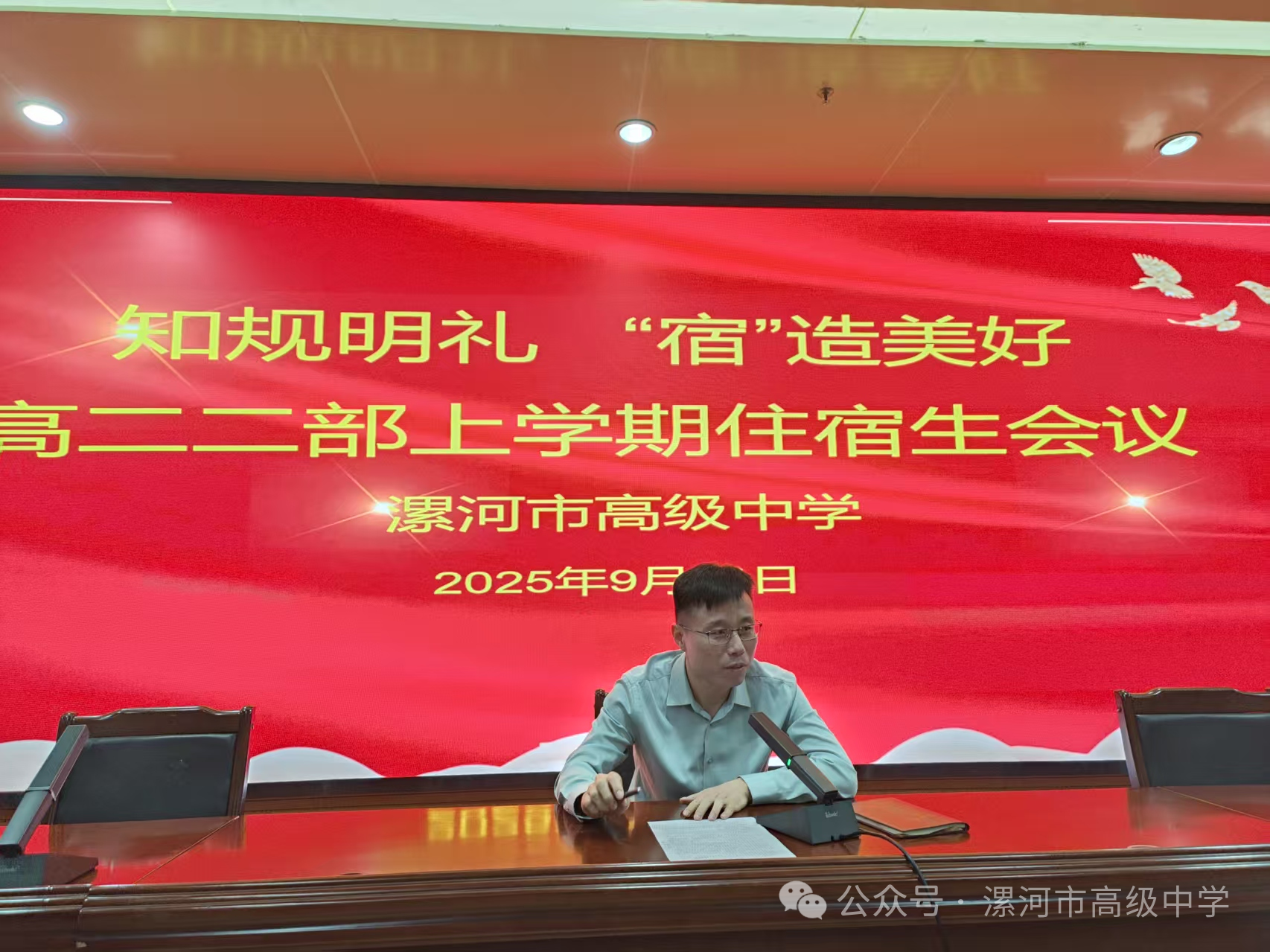 静,乃宿舍之本;雅,集宿舍之美。为进一步规范住宿生行为,营造良好的住宿环境,更好地为同学们的学习生活保驾护航,9月24日晚,漯河高中高二年级二部特组织召开2025——2026学年上学期住宿生管理会议。本次会议由马建松老师主持,高二年级二部年级主任张少强参加此次会议。