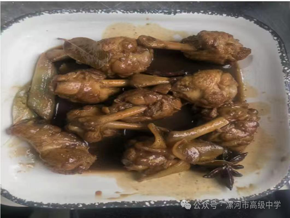 肉类食材经学子巧手烹制,成为节日里的暖心美味。“节节高升——糖醋排骨”以排骨的“节节”形态,搭配酸甜口感,寄托“步步高升”的美好祝愿;“红烧鸡翅根”则凭借醇厚酱汁与家常口感,传递出中秋团圆的温情,展现学子对传统厨艺的实践与传承。