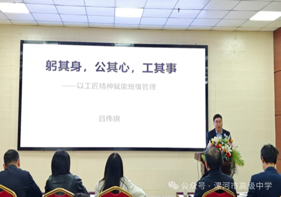 吕伟旗老师提出,教师应践行“工匠精神”,他从三个方面努力实践:以“躬身”深入教学一线、贴近学生;以“公心”公平对待每一位学生,公正处理事务;以“工事”专注教育本职,打磨教学细节。