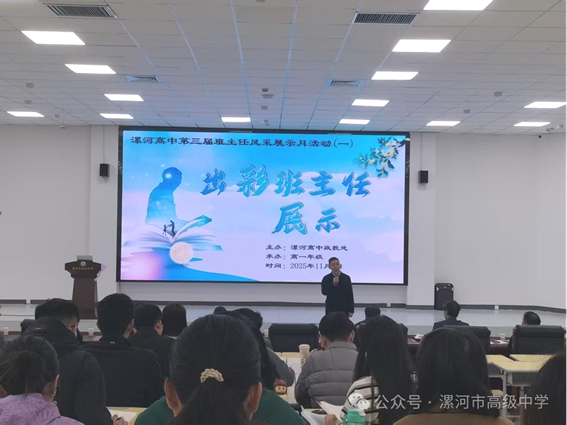为推动班主任专业化、多元化成长,培育一支有智慧、有情怀、有温度、有才华的高素质班主任队伍,增强班主任的职业责任感和认同感。经过政教处前期精心策划、积极准备,11月3日下午4:30,漯河市高级中学第三届班主任风采展示月活动在西校区阶梯教室拉开序幕,来自高一年级一部、二部的六位优秀班主任首先在出彩班主任展示评选活动中精彩亮相。