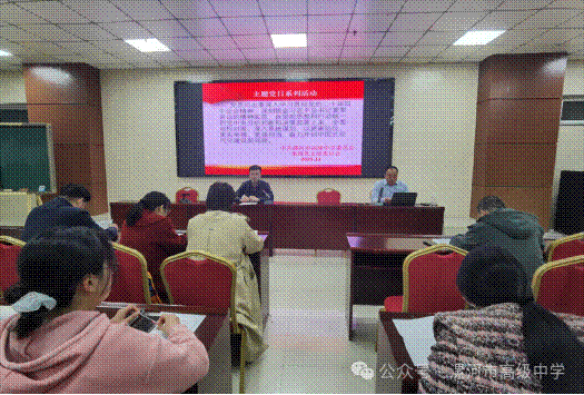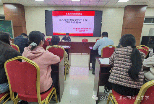 为深入学习贯彻党的二十届四中全会精神,强化党员教师政治担当,11月19日下午在北校区图艺楼会议室,中共漯河市高级中学委员会第四党支部开展了“深入学习贯彻二十届四中全会精神”主题党日活动。活动由支部组织委员秦靖峰主持,支部书记张少强领学。