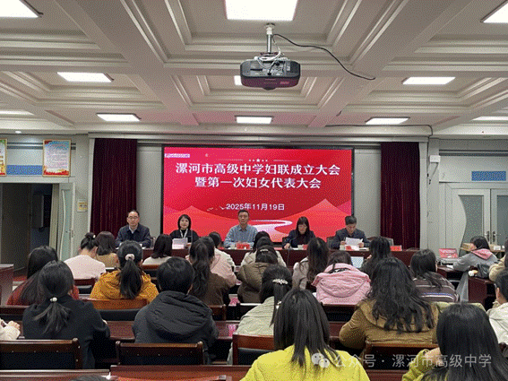 2025年11月19日下午,漯河市高级中学妇女联合会成立暨第一次妇女代表大会在南校区二楼报告厅隆重召开。党委书记赵耀堂,党委副书记、校长郭爱红,党委委员、副校长柳荣军,党委委员、副校长丁爱军等领导出席大会。大会由漯河市高级中学党委副书记陈爱红主持,来自各年级各处室的妇联代表参加了本次大会。