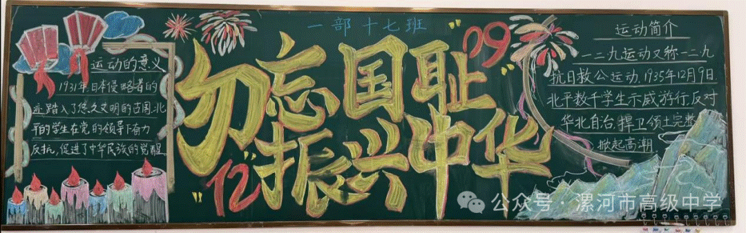铭记一二·九,传承爱国志——漯河市高级中学成功举办“纪念一二・九运动,争做新时代好青年”主题黑板报评比活动