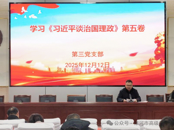 为深入学习贯彻党的创新理论,强化党员教师的政治素养和责任担当,切实把思想和行动统一到党中央决策部署上来,2025年12月12日,漯河高中第三党支部组织全体党员教师开展主题党日活动。