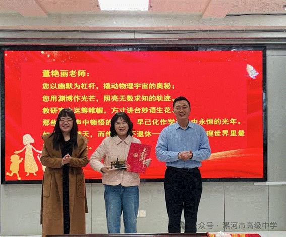 仪式上,相关处室还精心制作并播放了祝福视频,以影像定格温暖记忆。处室代表逐一上台,向三位老师敬献鲜花,表达诚挚敬意与美好祝愿。