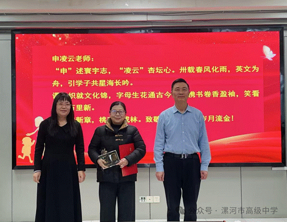 在感言分享环节,三位教师真情流露,言语间满是对教育事业的热爱、对学校的眷恋以及对同事与学生的牵挂。董艳丽老师动情回忆道,初到漯高时便感受到了大家庭的温暖,全校上下的鼎力支持让她快速成长,如今她也将这份帮扶精神传承给了青年教师,祝愿学校在“一校三区”协同发展中越来越好。申凌云老师坦言,最自豪的身份便是漯河高中的教师,几十年间见证了学校的辉煌成就,也收获了满满的师生情谊与同事温情,虽惜别三尺讲台,但这份教育情怀永不褪色。陈吉龙老师则深情感慨,漯高是干事创业的热土,能在此耕耘倍感骄傲与自豪,他将永远心系漯高,期盼学校发展更加耀眼、更加强大。