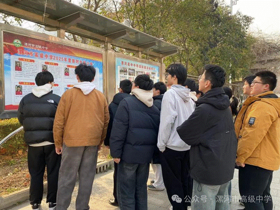 经班级自荐互荐、年级初审公示和学校团委综合评审等多环节严格筛选与把关,一批在思想品格、学业成绩、综合素质和社会责任等方面表现突出的同学脱颖而出,光荣当选2025年度“新时代好少年”。他们之中,有深耕传统文化、传承经典文脉的文化使者,有勤奋刻苦、学业优异的学习标兵,有热心公益、传递温暖的志愿先锋,也有以身作则、勇挑重担的学生干部……他们以实际行动展现了新时代漯高学子昂扬向上、勇于担当的精神风貌,为全校同学树立了可感可学的榜样标杆。 目前,学校三校区校园内均设置了漯河市高级中学2025年度新时代好少年宣传栏。展板上,当选同学的青春风采照片与详细事迹介绍整齐陈列,生动展现了他们在成长道路上的坚守与担当。课间时分,展板前总能吸引大批师生驻足观看、交流感悟。同学们在展板前认真研读榜样事迹,相互分享心得体会,纷纷表示要以当选的新时代好少年为榜样,在今后的学习生活中,自觉坚定理想信念、锤炼过硬本领、涵养高尚品格,将榜样精神转化为脚踏实地的行动,在爱国奉献中实现价值,在勤学善思中增长才干,在向善向美中砥砺成长。 此次“新时代好少年”事迹展示活动,是加强学生思想道德建设的重要举措,也是深化校园文明创建、营造优良育人氛围的具体实践。未来,漯河市高级中学团委将以此次活动为契机,持续深化德育工作内涵,引导漯高学子坚定理想信念、厚植家国情怀、勇于担当作为,让崇德向善引领校园文明风尚。 撰稿:周金 审核:康磊 李文斌 终审:陈爱红