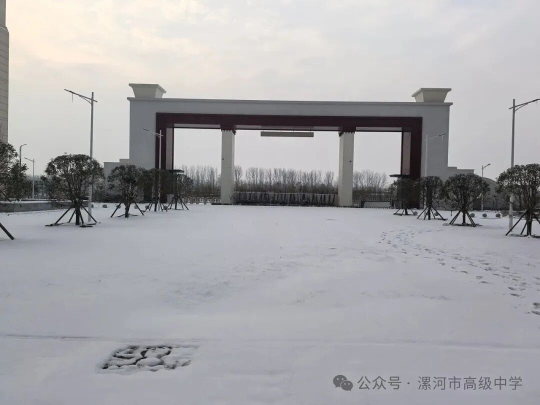 忽如一夜春风来,千树万树梨花开。2026年的初雪悄然而至,漯河市高级中学的三个校区披上银装,静谧中透出庄重,素雅中蕴含生机,宛如一幅徐徐展开的水墨长卷……