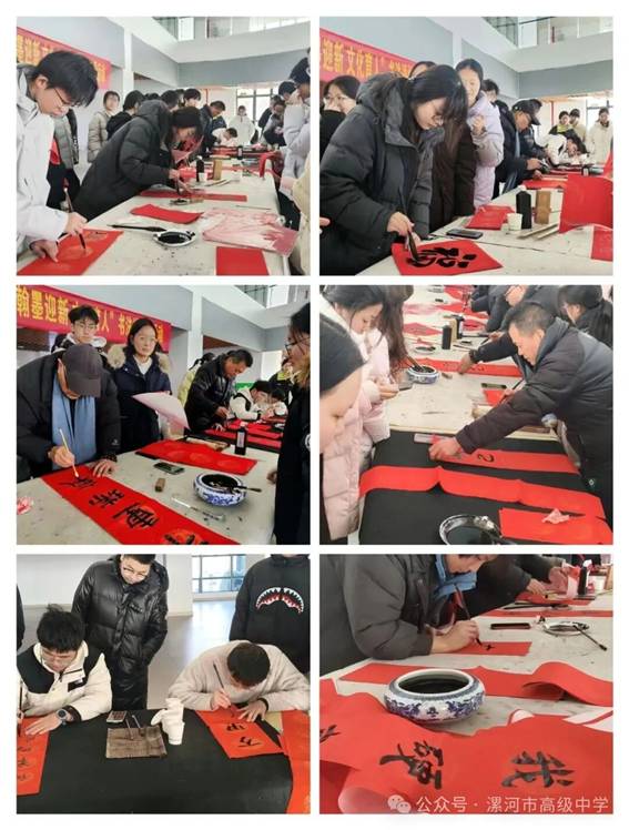 “削简龙文见,临池鸟迹舒。”岁聿云暮,春祺将至,为助力我校国家级文明校园创建,夯实我市高水平高中建设的文化根基,1月24日上午,漯河市高级中学特邀民盟漯河市委会部分知名书法家莅临我校西校区开展“翰墨迎新·文化育人”书法进校园活动,为漯高师生写春联、送祝福。墨香漫校园,雅韵启新程,西校区师生书法爱好者齐聚一堂,共赴这场笔墨传情的文化之约。