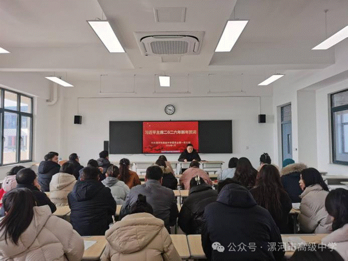 活动伊始,康磊带领全体党员教师研读了国家主席习近平发表的二〇二六年新年贺词,深刻领会其中蕴含的家国情怀与使命担当,激励党员教师拿出跃马扬鞭的勇气,激发万马奔腾的活力,保持马不停蹄的干劲,一起为梦想奋斗、为幸福打拼。