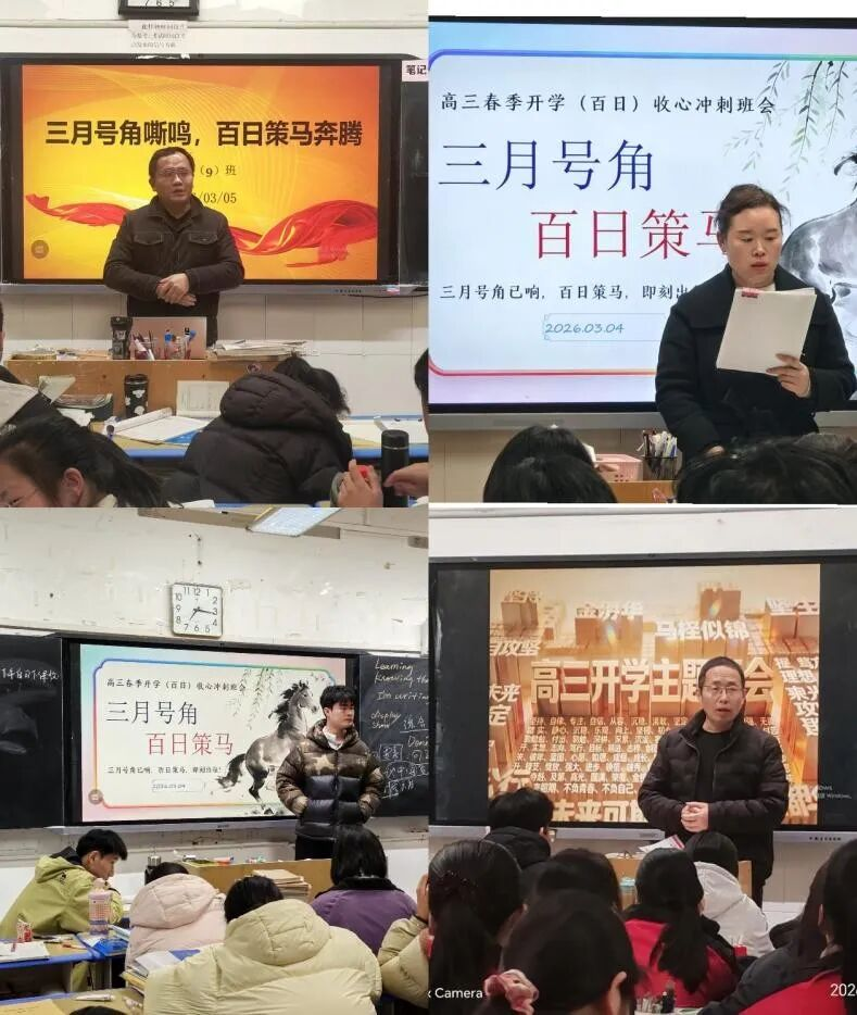 高一年级:跃马踏春来,逐梦启新程 高一年级班会以“跃”为核心,将新春的朝气与青春的梦想紧密相连。一张“2025站”驶向“2026站”的创意车票,寓意告别过往、拥抱未来。同学们在班主任的引导下,回顾寒假生活,分享成长点滴,并郑重写下新学期的目标。“票价:快乐无价,马上转运”的巧思,更寄托了对每一位学子策马扬鞭、不负韶华的美好期许。 高二年级:骐骥驰骋,势不可挡 高二年级以“骐骥驰骋,势不可挡”为主题,巧妙借力2026年春晚节目,开展了一场别开生面的“破冰”互动。从《贺花神》的文化韵味到《武BOT》的科技感,再到《妈妈有座电影院》的温情,同学们在分享中回味年味,更在交流中沉淀思考。班主任强调,高二是承上启下的关键期,通过收心归位、蓄力冲刺,以准高三之姿,共赴青春与时代之约! 高三年级:三月号角响,百日策马行 高三年级的班会则吹响了冲刺的号角。“三月号角已响,百日策马,即刻出征!”围绕“收心篇—方法篇—行动篇”三个板块,各班重点攻克“假期综合症”,引导学生调整生物钟、归位心态。同时,通过百日规划、精准发力、坚持到底的层层递进,点燃了高三学子决胜高考的斗志与信念。 从“收心”到“立志”,从假期回顾到目标制定,本次开学第一课不仅帮助同学们快速进入学习轨道,更通过丰富的互动与深刻的寄语,激发了全体漯高学子争做文明有礼、积极向上青年的决心。新的征程已然开启,愿每一位少年都如骏马奔腾,不负春光,不负自己! 撰稿:王艺迪 审核:张永辉 孙占峰 终审:柳荣军