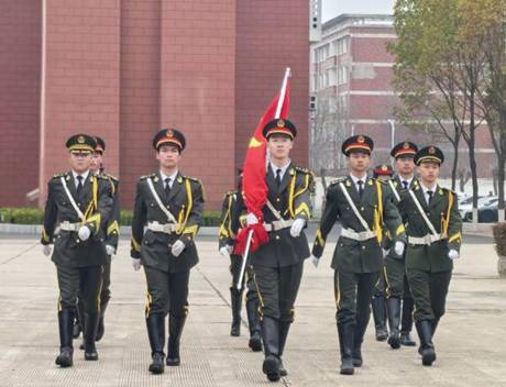 春日的校园庄严肃穆,国旗护卫队迈着铿锵步伐,护送鲜艳的五星红旗走向旗台。在雄壮的国歌声中,五星红旗冉冉升起,全体师生行注目礼,心中激荡着对祖国的赤城情怀。