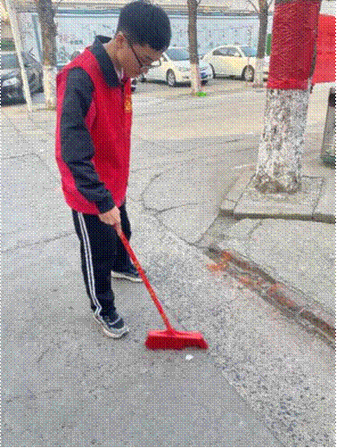 活动当天,在学校团委老师的带领下,身着统一志愿者服装的漯高学子迅速分工协作,手持扫帚等清洁工具,有条不紊地开展工作。大家重点对社区的公共区域和卫生死角进行全面清理,认真清扫地面垃圾、清理绿化带杂物,以严谨细致的态度对待每一项任务。同学们不怕脏、不怕累,用双手践行志愿承诺,让社区的环境焕然一新。