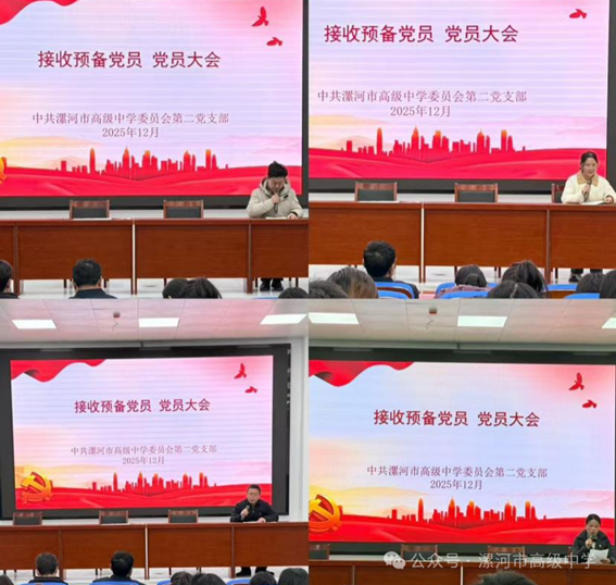 此次党员大会流程规范、内容充实、意义深远,既严格执行了党的组织程序,壮大了党员队伍,又强化了党员的理论武装和党性修养。中共漯河市高级中学委员会第二党支部全体党员将以此次大会为契机,凝心聚力、锐意进取,立足教育教学岗位践行初心使命,为学校高质量发展和学生成长成才贡献更多党员力量!