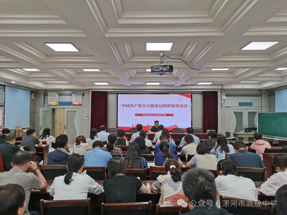 本次主题党日活动上,首先由行政和高三年级党支部书记康磊同志带领大家学习中办印发的《中国共产党不合格党员组织处置办法》。