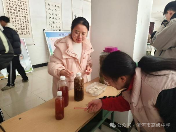 12月3日下午,漯河高中生物学教研室在图艺楼一楼大厅成功举办了生物社团活动成果展。本次活动以展示生物学科魅力为核心,通过果酒果醋、泡菜、霉豆腐等传统发酵食品的制作,以及显微镜下微观世界的探索、真核细胞模型构建与生态缸展示等多样化实践环节,全面激发学生对生命科学的浓厚兴趣,丰富课余文化生活。