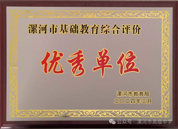 2024年,漯河高中在高考中取得了新突破,各方面均表现出色:理科董和泰同学以715分的成绩勇夺全市理科第一名,全省第二名。裸分700分以上人数4人,全省第一。达到清北及其强基线共三十多人,1500多名优秀学生被全国知名高校录取,同时还通过自主招生、强基计划、艺考等多种途径,将大量有才艺、有特长的学生送入理想的大学。学校被评为首批河南省特色高中、漯河市基础教育综合评价优秀单位;蝉联北京大学“博雅人才共育基地”;获清华大学、复旦大学、北京师范大学、北京科技大学、华侨大学、吉林大学、中国传媒大学、哈尔滨工程大学、华侨大学等多所高校优质生源基地荣誉称号。