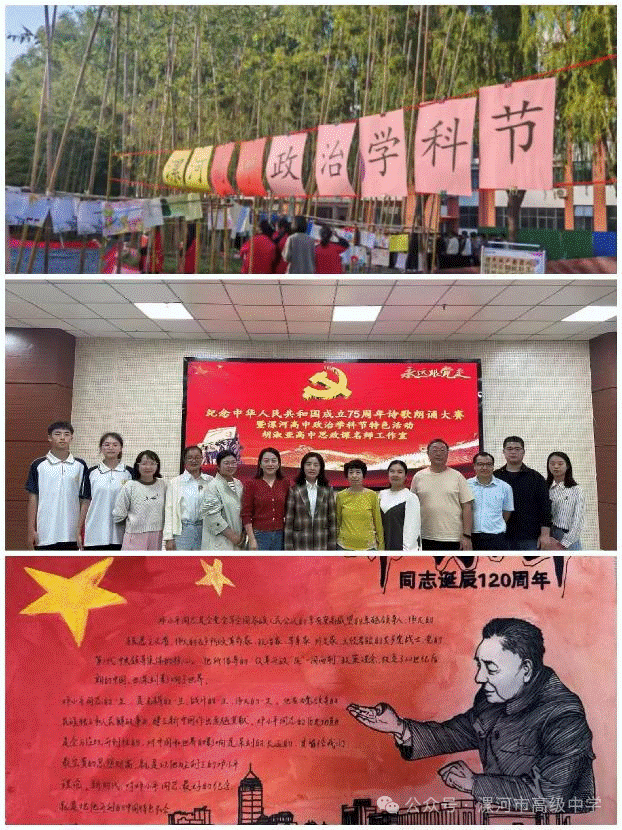 10月,漯河高中成功举行“展思政风采、铸青春底色”主题政治学科节特色系列活动。学科节由庆祝中华人民共和国75周年红色诗歌朗诵大赛、“歌颂祖国”主题原创诗词大赛、“纪念邓小平同志诞辰120周年”主题手抄报比赛系列活动组合而成,并通过名师工作室公众号予以详细展播。高一、高二年级的学生积极参与。丰富多彩的活动不仅提升了思政育人的效果,更激发了学生的爱国主义情感,引导学生树立共产主义远大理想,为实现中华民族伟大复兴的中国梦贡献青春力量。
