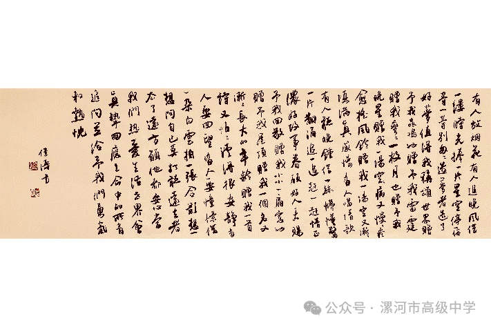 钮伟涛老师以笔墨书写教育情怀,用公益传递文化温度,是“以美育人”的典范。他表示,未来将继续深耕书法教育,推动传统文化进校园、进社区。漯河高中也将进一步优化美育课程体系,承担新的文化使命,为文化强国建设、民族伟大复兴作出更大贡献。