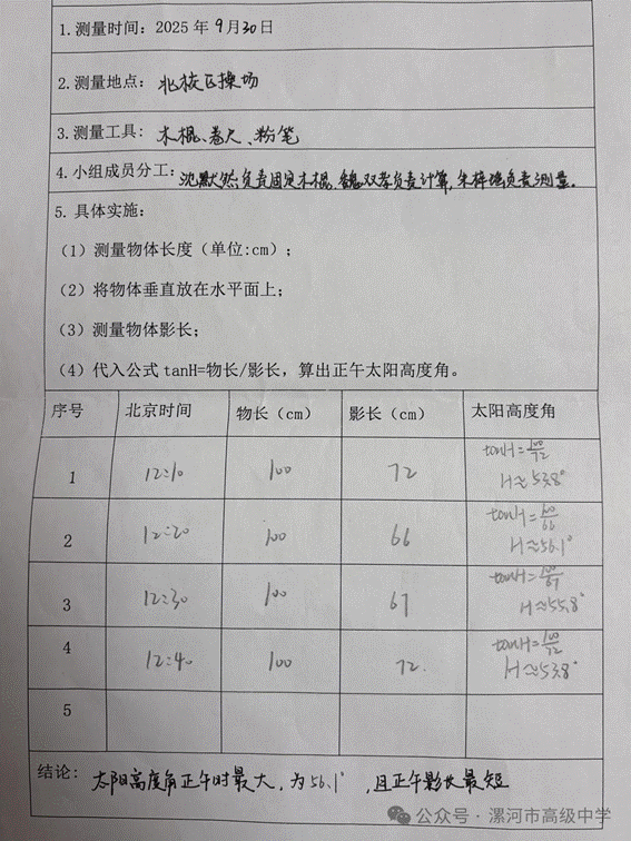 “追光测影,解码天地”——漯河高中地理爱好者协会开展“测算太阳高度”地理实践活动