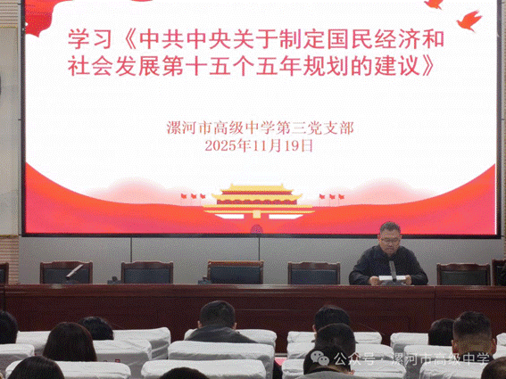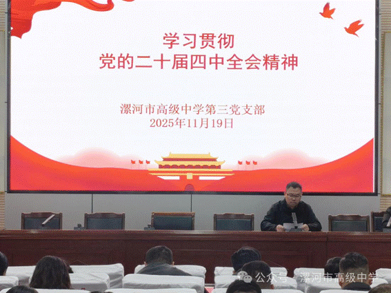 11月19日下午,漯河市高级中学第三党支部组织开展了11月主题党日活动。本次主题党日活动围绕学习贯彻党的最新精神、宣传先进模范典型等内容展开,全体党员教师积极参与,现场气氛热烈。