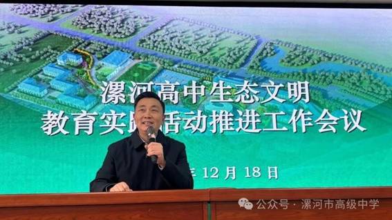 为深入践行习近平生态文明思想,扎实推进青少年自然教育与生态文明建设。12月18日下午,漯河市高级中学生态文明教育实践主题活动正式拉开帷幕。漯河市高级中学党委书记赵耀堂出席启动仪式并发表讲话,高一年级一部、二部全体学生及班主任共同参与活动。
