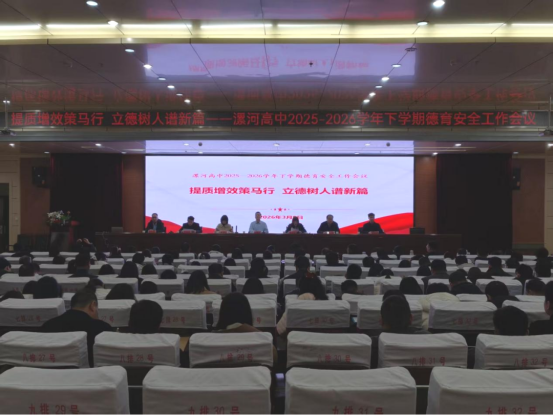 春启新程谋发展,提质增效勇争先。为深入贯彻立德树人根本任务,全面推动德育安全工作提质增效,明确新学期工作方向,凝聚全员育人合力,3月9日下午,漯河市高级中学2025-2026学年下学期德育安全工作会议在北校区图艺楼一楼报告厅隆重召开。