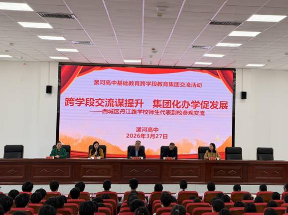 最后,我校语文、数学、英语学科骨干教师为丹江路学校师生代表带来专题讲座,结合学科核心素养、学习规律与方法策略进行细致讲解,为同学们稳步提升学业、顺利完成学段过渡提供有力指导。 此次跨学段交流活动,是漯河高中推进教育集团化办学、深化学段协同育人的生动实践。活动既有效加强了初高中校际教育教学联动,也为后续深化校际合作、健全学段衔接育人机制奠定了坚实基础。 撰稿:张帆帆 审核:康磊 姚冬青 终审:丁爱军