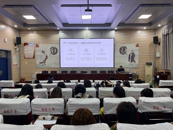 培训会上,我校两位老师做专项分享。漯河市优秀教师、文明教师、教学技能标兵获得者常亮开展PPT制作专项培训,他立足日常教学课件设计痛点,结合实战案例,细致讲解PPT制作规范、设计原则与优化技巧,干货十足、实用性极强。