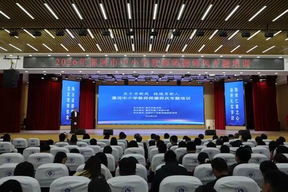 4 月 11 日,2026 年漯河市中小学教师师德师风专题培训隆重举行。市教育局党组成员、副局长聂广桥出席活动,与河南大学教育学博士、教授、王拱璧教育思想研究员王立教授共同为 “拱璧讲坛”揭牌,标志着我市本土教育家精神传承与师德涵养体系建设迈入新阶段。