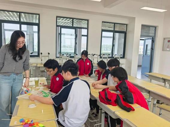 活动伊始,社团指导老师罗文清带着同学们追溯风筝的起源,从春秋战国时期的“木鸢”雏形,到汉代造纸术发明后“纸鸢”的普及,再到唐宋时期成为盛行的民俗活动,明清时期走向成熟并形成不同地域的特色流派——北京沙燕风筝的精巧、潍坊龙头蜈蚣的恢弘、南通板鹞的雄浑,每一种样式都藏着民间艺人的巧思,每一段历史都承载着中国人对美好生活的向往。 罗文清老师结合民间美术的核心特点,为同学们拆解风筝的美学内涵:风筝的造型多取材于自然万物、吉祥纹样,花鸟鱼虫、瑞兽祥云的图案,不仅是视觉的美感,更蕴含着民间的民俗信仰与美好期许;风筝的色彩搭配鲜明浓烈,对比强烈却不失和谐,是民间美术“质朴灵动、寓意吉祥”的典型体现;而风筝的骨架制作,讲究对称、轻盈、牢固,更是民间工匠精益求精的技艺展现。同学们听得聚精会神,也渐渐懂得:一枚小小的风筝,承载的是中华民间美术的千年积淀,是古人的审美情趣与生活热爱。